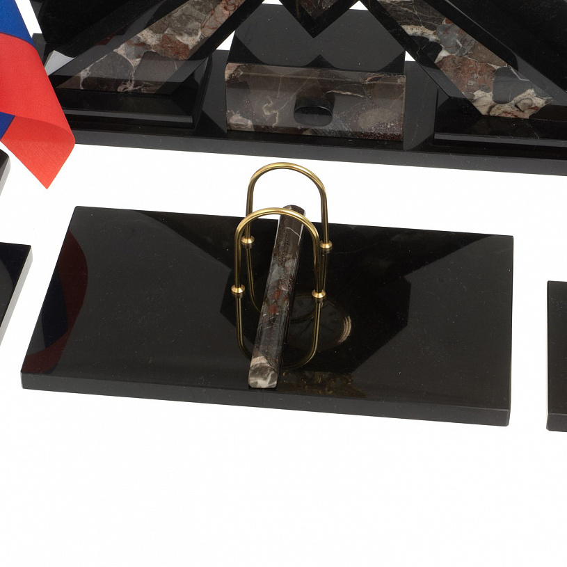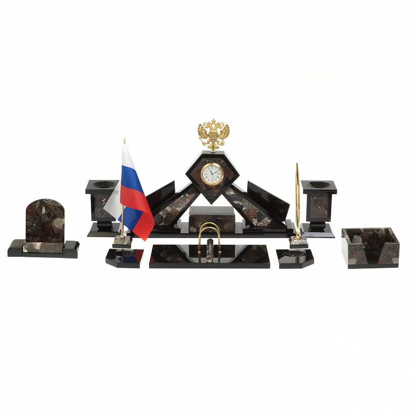 Комплектация: центральная часть 1 шт, подставка под календарь 1 шт, карандашница 1 шт, кубарик 1 шт, подставка под телефон 1 шт, подставка под ручку 1 шт, флагшток 1 шт