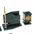 Настольный набор «Герб России» камень змеевик - это уникальное изделие ручной работы, выполненное из камня змеевик и латуни. Этот набор станет настоящим украшением любого интерьера и подчеркнет изысканный вкус его владельца.