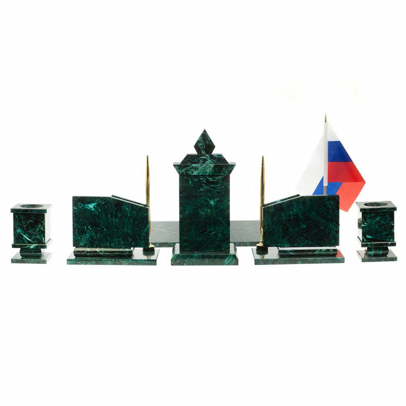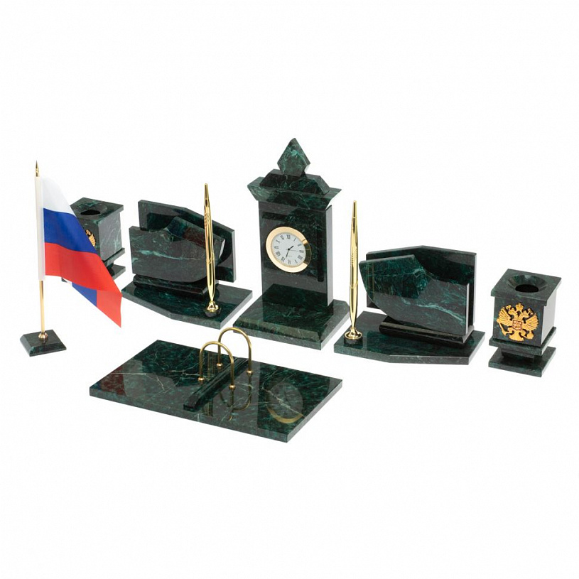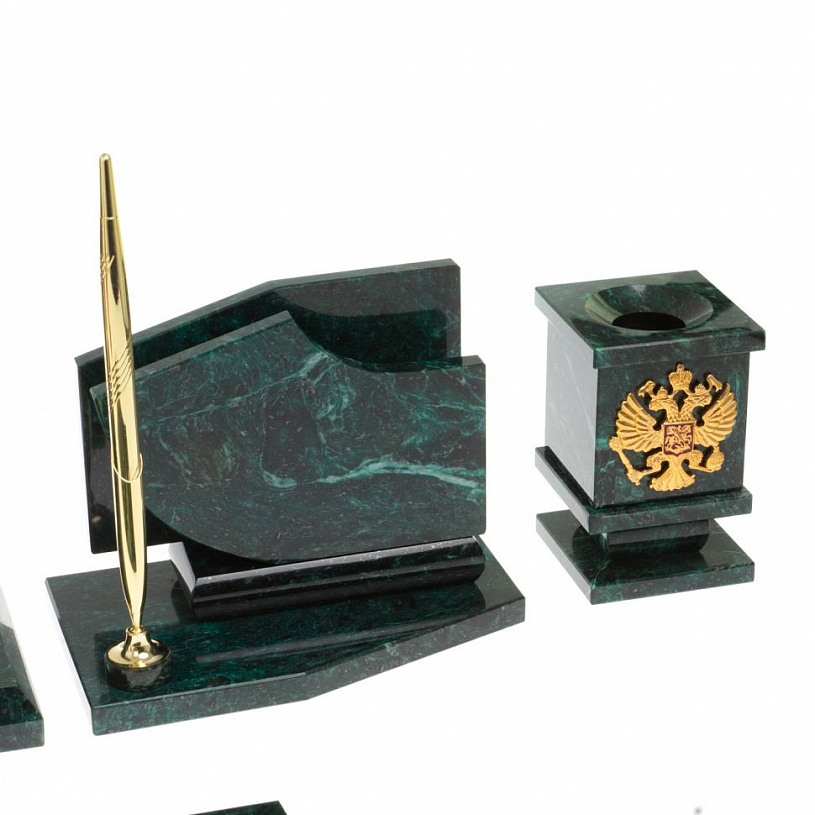 Настольный набор «Герб России» камень змеевик - это не просто предмет интерьера, это произведение искусства, которое будет радовать глаз и напоминать о великой истории России.