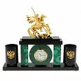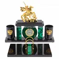 Настольный набор из малахита "Георгий Победоносец" – идеальный подарок для ценителей изысканного и роскошного стиля, а также прекрасное украшение для вашего дома или офиса.
