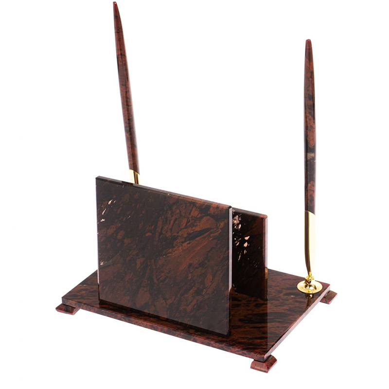 Письменный набор из обсидиана может стать отличным подарком для руководителя. Обсидиан – это вулканическое стекло, имеющее темно-черный или черноватый цвет. Его глубокий оттенок и блестящая поверхность придают изделиям из этого материала особый шарм и элегантность. Письменные наборы из обсидиана – это не только функциональный, но и стильный подарок, который может привлечь внимание и подчеркнуть индивидуальность.