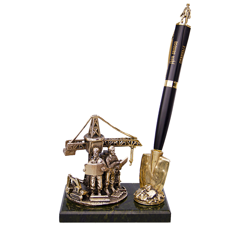 Навершие «Строитель» из латуни, выполненное в уникальной технике точного художественного литья, является главной изюминкой ручки.