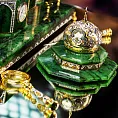 Подчеркните свой исключительный статус с настольным набором «Восточный» из нефрита. Эта коллекция предметов для письменного стола выходит далеко за рамки простой канцелярии, превращая рабочее пространство в зону изысканного вкуса и власти. Доминанта набора — изящные часы-шкатулка, повторяющие архитектуру мечети с устремленными вверх минаретами. Могучий нефрит, несущий в себе силу природы, обрамлен изысканной отделкой из золота и инкрустирован искрящимися фианитами. Такой набор, выполненный из ювелирной латуни, серебра и золота, — не просто подарок. Это инвестиция в образ сильного лидера, символ его решений и успеха.