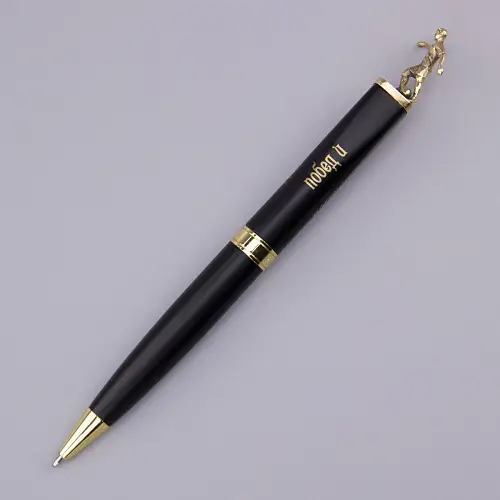 на корпусе ручки методом лазерной гравировки, цветная УФ-печать на футляре.
