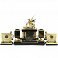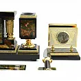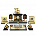 Письменный прибор с часами и отделениями для канцелярских принадлежностей, выполненный в едином стиле.