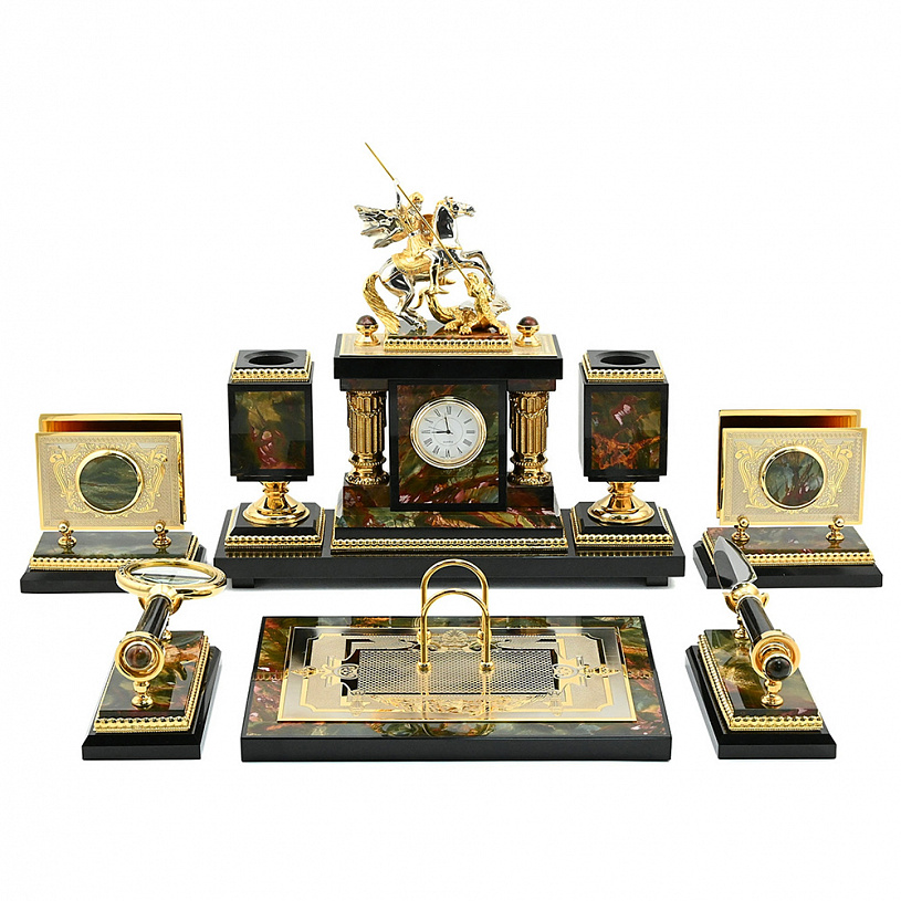 Настольный письменный набор из яшмы "Георгий победоносец" Златоуст