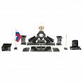 Комплектация: Часы с выдвижным пеналом, подставка под перекидной календарь, флагшток с флагом, ручка на подставке, карандашница 2 шт, подставка для скрепок 2 шт, кубарик для бумаг, подставка под смартфон