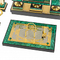 Этот письменный набор из малахита будет прекрасным подарком для ценителей роскоши и изысканности. Он станет не только украшением вашего рабочего стола, но и символом вашего тонкого вкуса и утонченности. Создайте атмосферу роскоши и изыска с этим шикарным настольным набором.