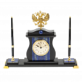Письменный набор с часами из натурального камня "Герб РФ"
