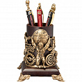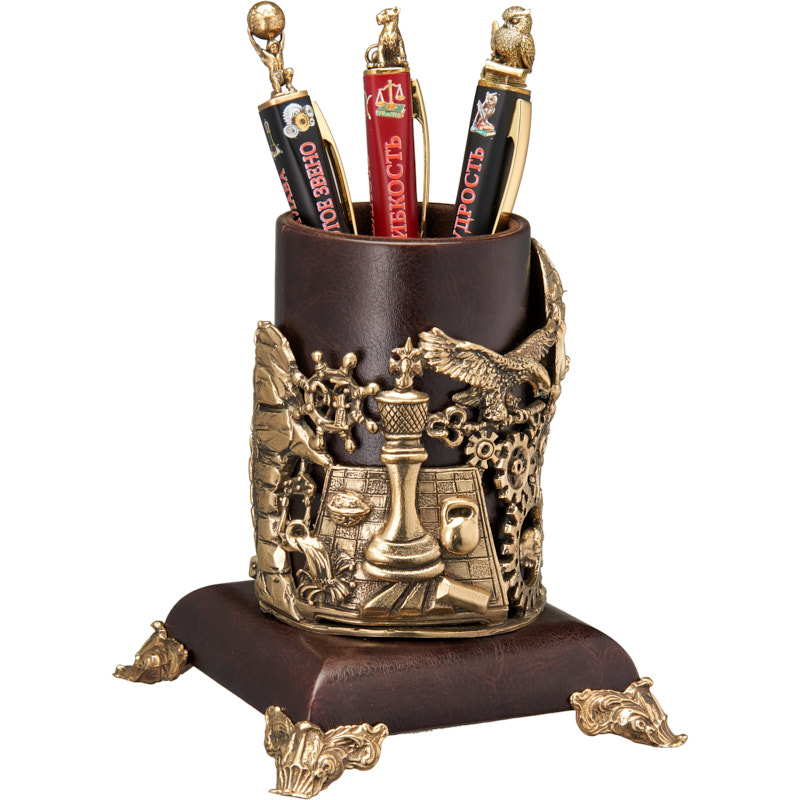 Материал набора: стакан - кожа, подстаканник - бронза, подставка - кожа с бронзовой фурнитурой.