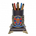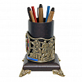 Материал набора: стакан - кожа, подстаканник - бронза, подставка - кожа с бронзовой фурнитурой.