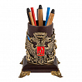 Материал набора: стакан - кожа, подстаканник - бронза, подставка - кожа с бронзовой фурнитурой.
