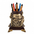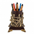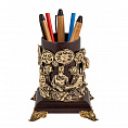 Материал набора: стакан - кожа, подстаканник - бронза, подставка - кожа с бронзовой фурнитурой.
