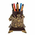 Материал набора: стакан - кожа, подстаканник - бронза, подставка - кожа с бронзовой фурнитурой.