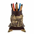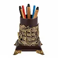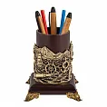 Материал набора: стакан - кожа, подстаканник - бронза, подставка - кожа с бронзовой фурнитурой.