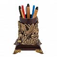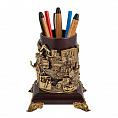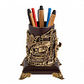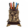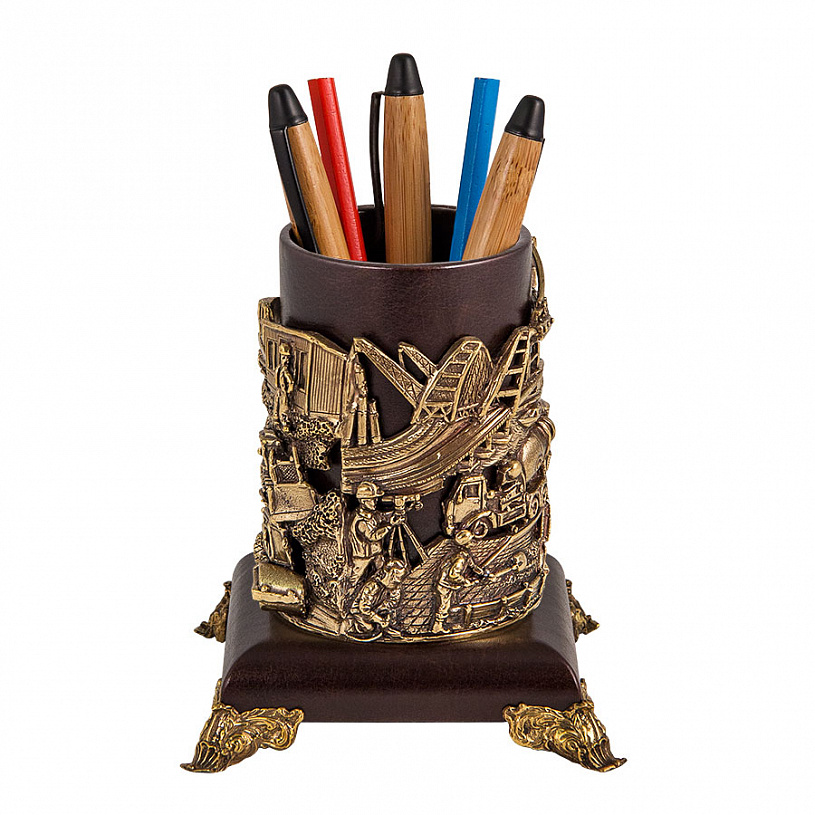 Материал набора: стакан - кожа, подстаканник - бронза, подставка - кожа с бронзовой фурнитурой.