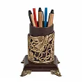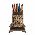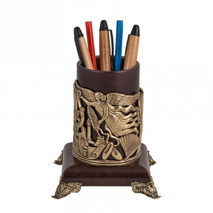 Материал набора: стакан - кожа, подстаканник - бронза, подставка - кожа с бронзовой фурнитурой.