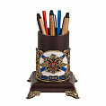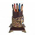 Материал набора: стакан - кожа, подстаканник - бронза, подставка - кожа с бронзовой фурнитурой.