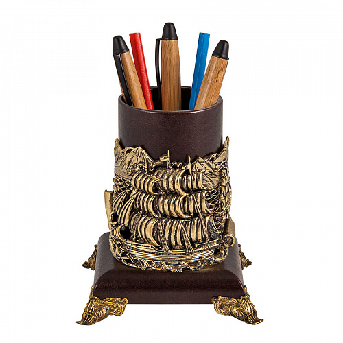 Материал: бронза, подставка — дерево, обтянута кожей.