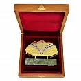 Изделие выполнено в технике Златоустовской гравюры на металле. Токарные работы, рисовка кистью, гравировка иглой по лаку, травление, гравировка резцом, полировка, никелирование, золочение.