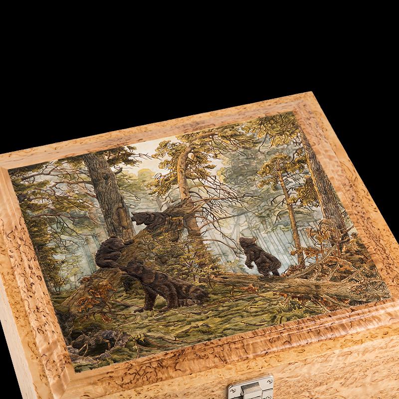 Русское лото из карельской березы с серебром «Мишки в лесу»