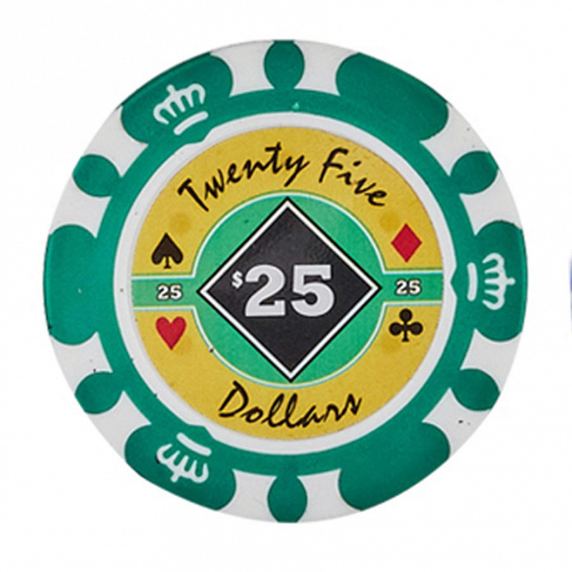 Номинал фишек: 5-100шт, 25-100шт, 100-75шт, 500-25шт