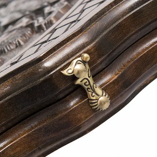 Эксклюзивные с инкрустацией. Представляют собой произведения искусства, с инкрустацией драгоценными металлами, камнями, уникальными узорами. Каждый комплект подарочных нард ручной работы оригинален, что делает его идеальным подарком для ценителей роскоши, изысканности. Обычно изготовлены из самых качественных материалов, гарантируя долговечность, красоту.