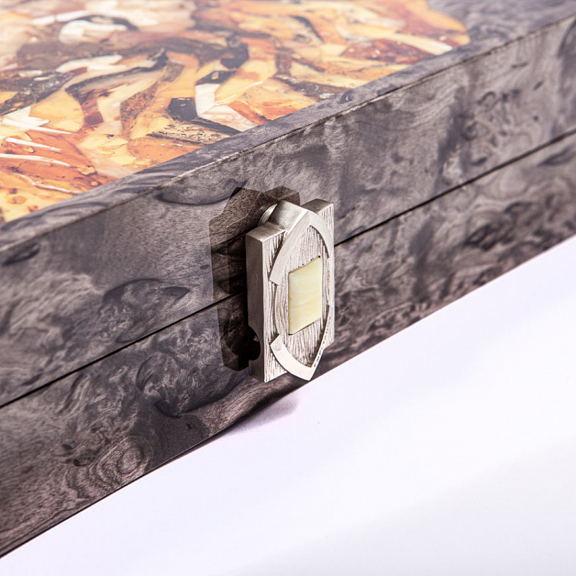 Нарды из карельской березы и янтаря "Лев"