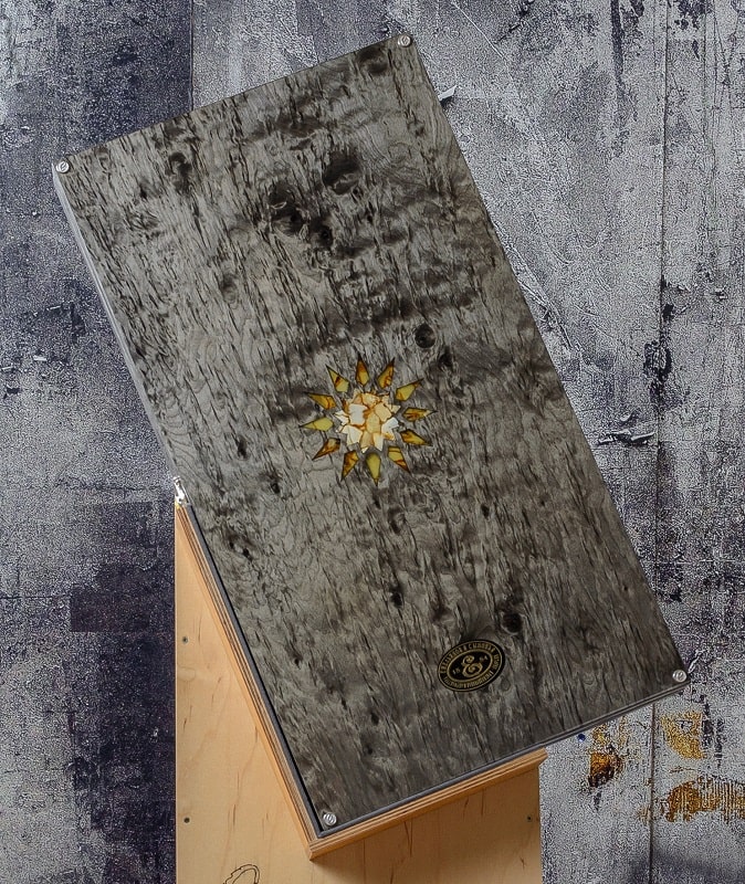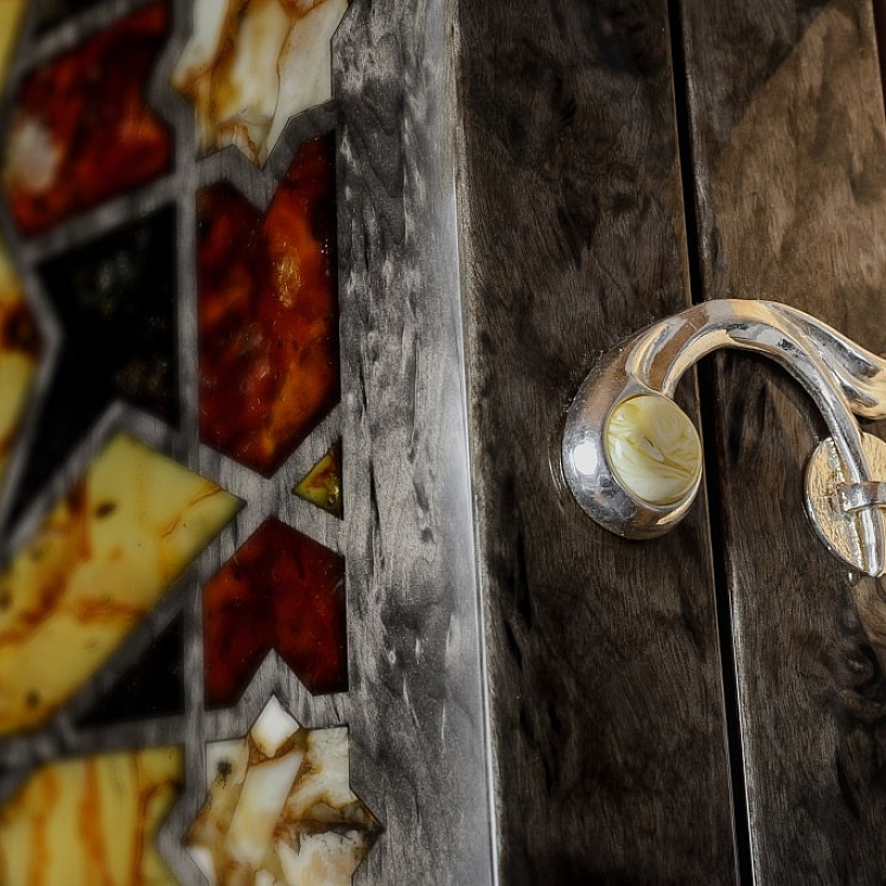 Тонированная карельская берёза, янтарь, композит.
