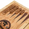 В набор входит: игровая доска с металлическим замочком, фишки диаметром 28 мм, в количестве 30 штук (15 штук темные и 15 штук светлые), два мешочка под фишки, кубики 4 штуки (пластиковые).