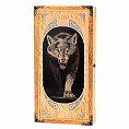 Рисунок «Волк» и внутренняя отделка нард изготовлены в технике маркетри (деревянная мозаика) из ценных пород древесины: клен сикаморе, ипе (бразильский орех), палисандр, ярра, оливковое дерево,тополь, мовингу.