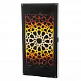 Этот игровой набор словно сошёл со страниц сказок Шахерезады. Доска из цельного массива ясеня инкрустирована кусочками солнечного янтаря, собранными в завораживающий восточный орнамент. Каждая ячейка поля переливается медовыми, карамельными и вишнёвыми оттенками, напоминая то узоры арабских ковров, то витражи дворцовых окон.