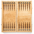Корпус нард выполнен из массива карельской березы. Крышка доски украшена вручную раскрашенным сюжетом битвы Пересвета и Челубея с знаменитой картины М. И. Авилова (1943 г.). Игровое поле собрано из шпона, который обладает отличными противоударными характеристиками, и серебряные фигурки не повреждают его. Изделие поставляется в сумке для хранения.
