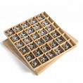 Темные фишки (15 элементов) — Войско правителя части Золотой Орды Мамая. На аверсе каждой фишки изображен Челубей перед атакой. Реверс покоится на деревянном основании, c наклееной алькантарой. Гурт украшен монголо-татарским национальным орнаментом.