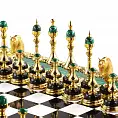 Шахматы "Малахитовые" - это уникальное и роскошное изделие, созданное мастерами из города Златоуст, известного своим металлообрабатывающим искусством.