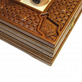 - Поле набрано из попеременно расположенных квадратиков шпона клена (белые клетки) и ореха (темные клетки). Набор каждого поля осуществляется вручную. Размер клетки поля 46,5*46,5 мм.