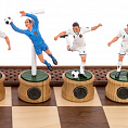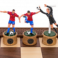 - Фигуры вручную отлиты из цинкового сплава, что делает их не особо тяжелыми, но при этом позволяет избежать свойственной легким сплавам склонности к деформации и сминаниям. После тщательной вышливовки мелких следов литья каждая фигура попадает в руки наших художников и вручную окрашивается в цвета домашней и гостевой формы клуба с нанесением логотипа. На финальной стадии каждая фигурка ставится на деревянный подиум с внедренной в него символикой, позволяющей определить какая фигура представлена данным "футболистом". Подиумы выполнены из драгоценных сортов древесины, что бережет целостность деревянной поверхности игрового поля.