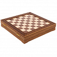 - Поле набрано из попеременно расположенных квадратиков шпона клена (белые клетки) и ореха (темные клетки). Набор каждого поля осуществляется вручную. Размер клетки поля 46,5*46,5 мм.