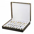 Эти шахматы — не просто игра, а воплощённая вселенная в камне и металле. Доска из цельного лазурита глубинного синевы, с золотистыми искрами пирита, словно ночной небосвод Млечного Пути. На нём разворачивается битва бронзовых фигур, отлитых с музейной точностью — каждая деталь дышит историей величайших сражений.