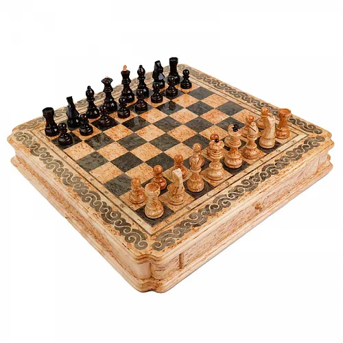 Шахматный ларец из карельской берёзы и янтаря – это изысканный и уникальный товар, созданный с использованием карельской березы. Фигуры выполнены из композитного материала, что придает им особую прочность и элегантность. Но главной изюминкой этого набора является использование янтаря, который придает шахматам неповторимый шарм и роскошный вид.
