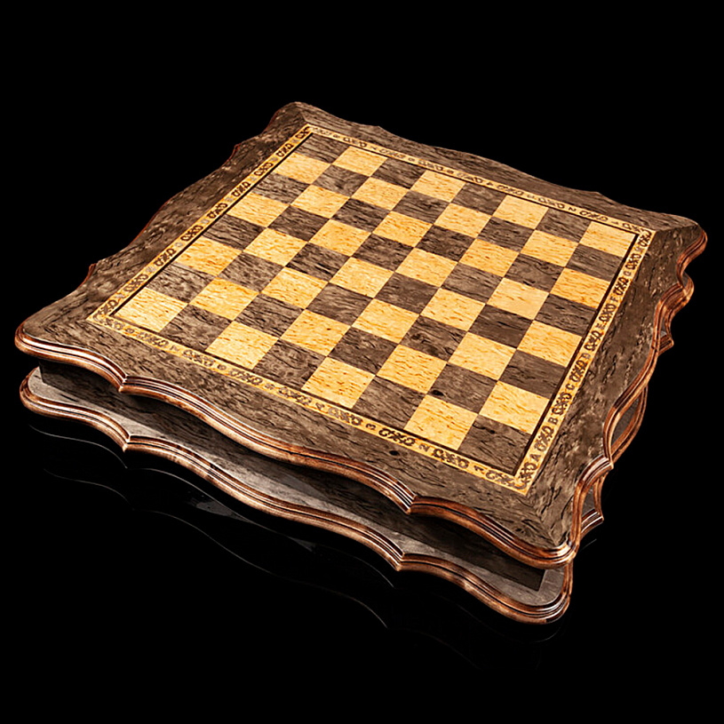 Элегантный фигурный край шахматной доски не только добавляет эстетического шарма, но и обеспечивает удобство в игре.