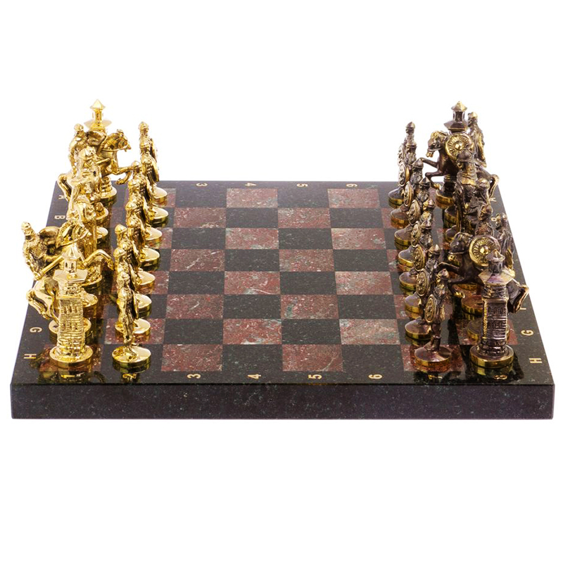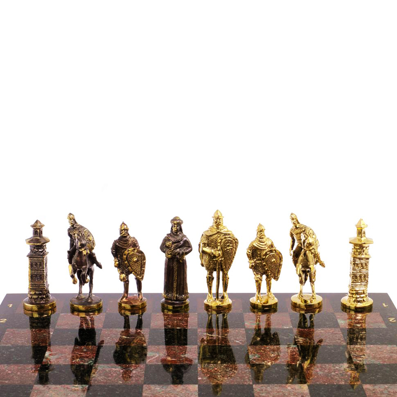 Шахматы "Богатыри" из натурального камня и бронзы — это уникальный набор, сочетающий в себе искусство и традиции. Фигуры выполнены в виде русских богатырей и их противников, что придает игре особый колорит и историческую атмосферу. Натуральный камень и бронза обеспечивают долговечность и эстетическую привлекательность, делая этот набор настоящим произведением искусства и достойным украшением интерьера.