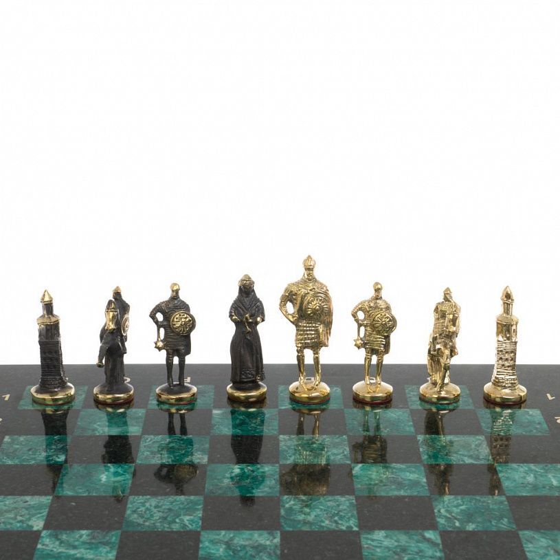 Шахматы ручной работы из змеевика "Русские"