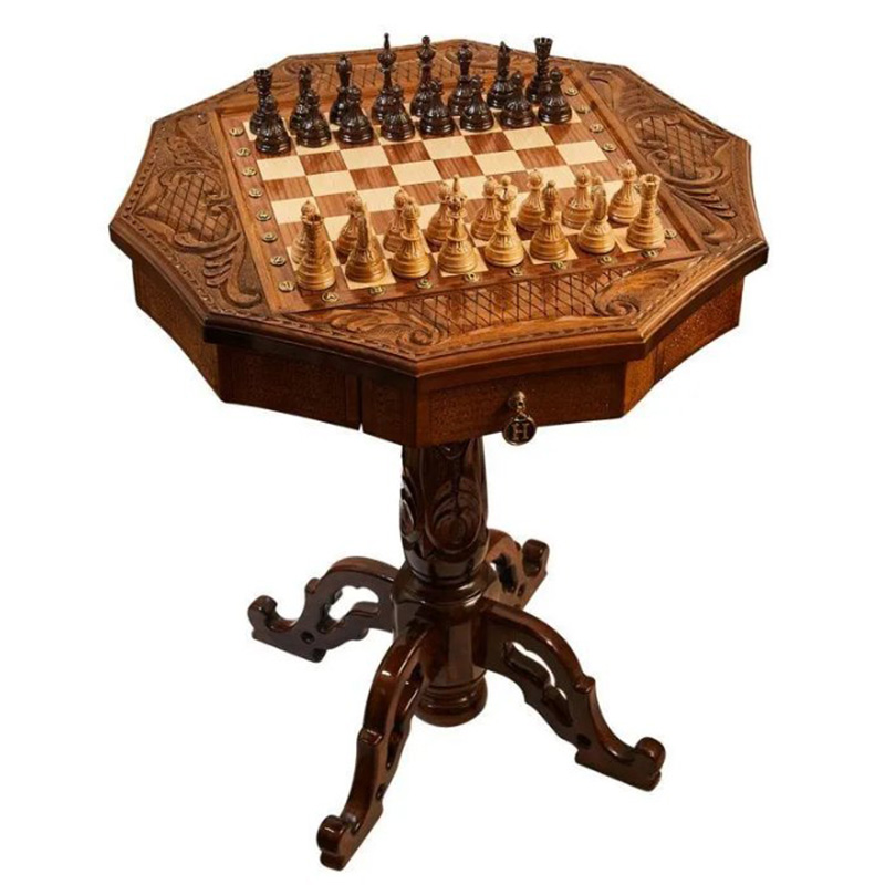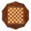 Фигурки тут также вырезаны вручную из дерева и покрыты лаком. Их качество на высоте - нестандартный подход мастера прослеживается во всем. Красивая форма, оформление в старинном стиле, как будто эту доски забрали у индийского правителя и выставили на продажу. Предусмотрено специальное отделение в виде ящичка, куда помещается весь комплект фигурок.