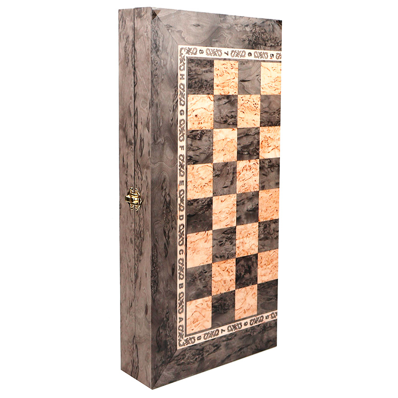 Шахматная доска складывается пополам, что делает её компактной для хранения и транспортировки.
