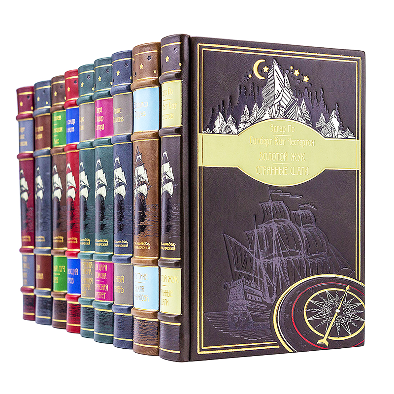 Художественный стиль кожаного переплета, множество цветовых вариантов оформления с акцентом на едином стиле дизайна. Ручная работа и лучшие материалы в оформлении, все обрезы блоков страниц украшены тематическими рисунками. Книги отпечатаны на дизайнерской бумаге, разработанной для комфортного чтения.