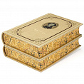 Кожаный ручной переплет, превосходного качества переплетная кожа цвета кофе с молоком. Книги отпечатаны на дизайнерской бумаге OZON, обрезы с трёх сторон отшлифованы вручную и окрашены в стиль мраморной бумаги, полностью ручная работа. Тиснение объёмное золотое, блинтовое и цветное.
