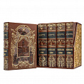Французский стиль кожаного переплета, уникальное тиснение по коже. Книги отпечатаны на итальянской дизайнерской бумаге "ARENA IVORY", вручную сшиты книжные блоки и отшлифованы. Страницы с тематическим оформлением и множеством интересных иллюстраций. Обрезы блока страниц в золотой тонировке, также украшены рисунками из сцен произведений.