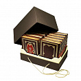 В оформлении переплета данного букинистического издания применяется уникальная технология "аппликации", выполненная из двух разных видов натуральной кожи. Сочетание блинтового и золотого тиснения выполненных на высококачественной натуральной коже. Дизайн дополнен крашенным в тон переплетного материала обрезом. Ляссе. Богато оформленные дюблюрами составные форзацы. Собрание представлено в оригинальной подарочной коробке.