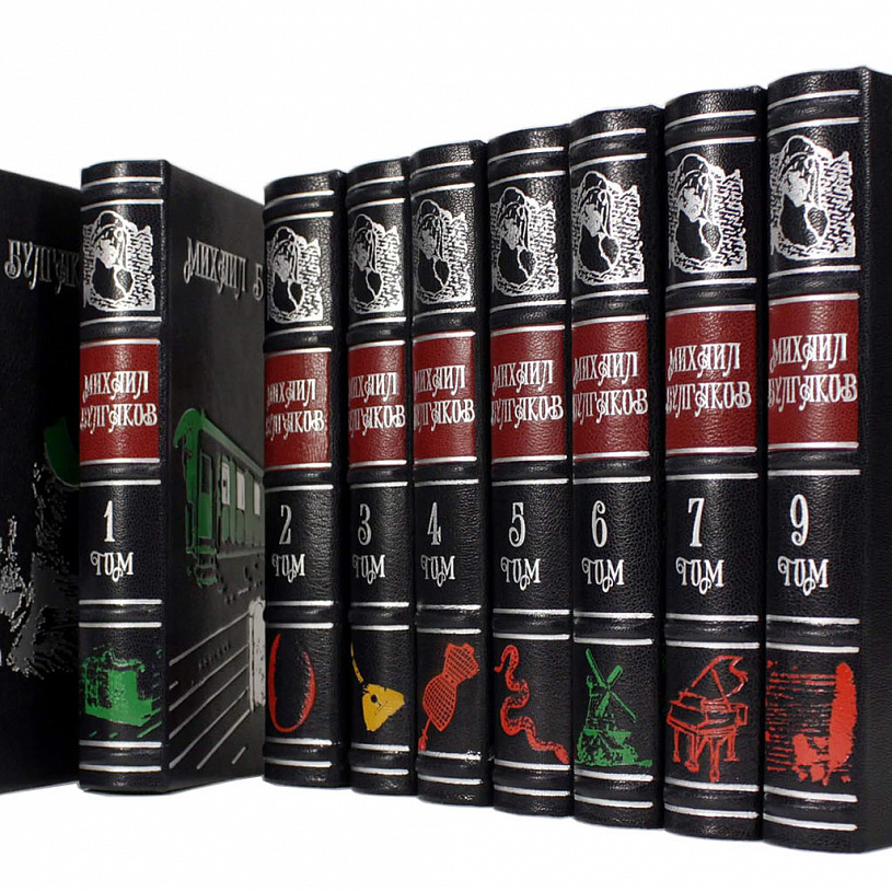 Подарочное собрание сочинений в 10 томах одного из самых гениальных писателей Михаила Булгакова. Кожаный ручной переплет в историческом французском стиле. Шагреневая кожа, цветное и серебряное тиснение, тонированный блок страниц с тематическим узором. Одна из лучших работ нашей переплетной мастерской и издательства. Оформление содержания имеет специально разработанный для данного собрания сочинений оригинальный дизайн. Превосходный подарок для ценителей книг!
